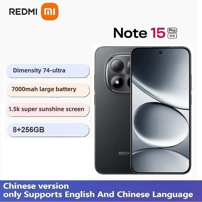 XIAOMI Redmi Note 15 Pro 5G 6.83″ 8GB 256GB Dual SIM 7000mAh 1.5K AMOLED Display – Midnight Black